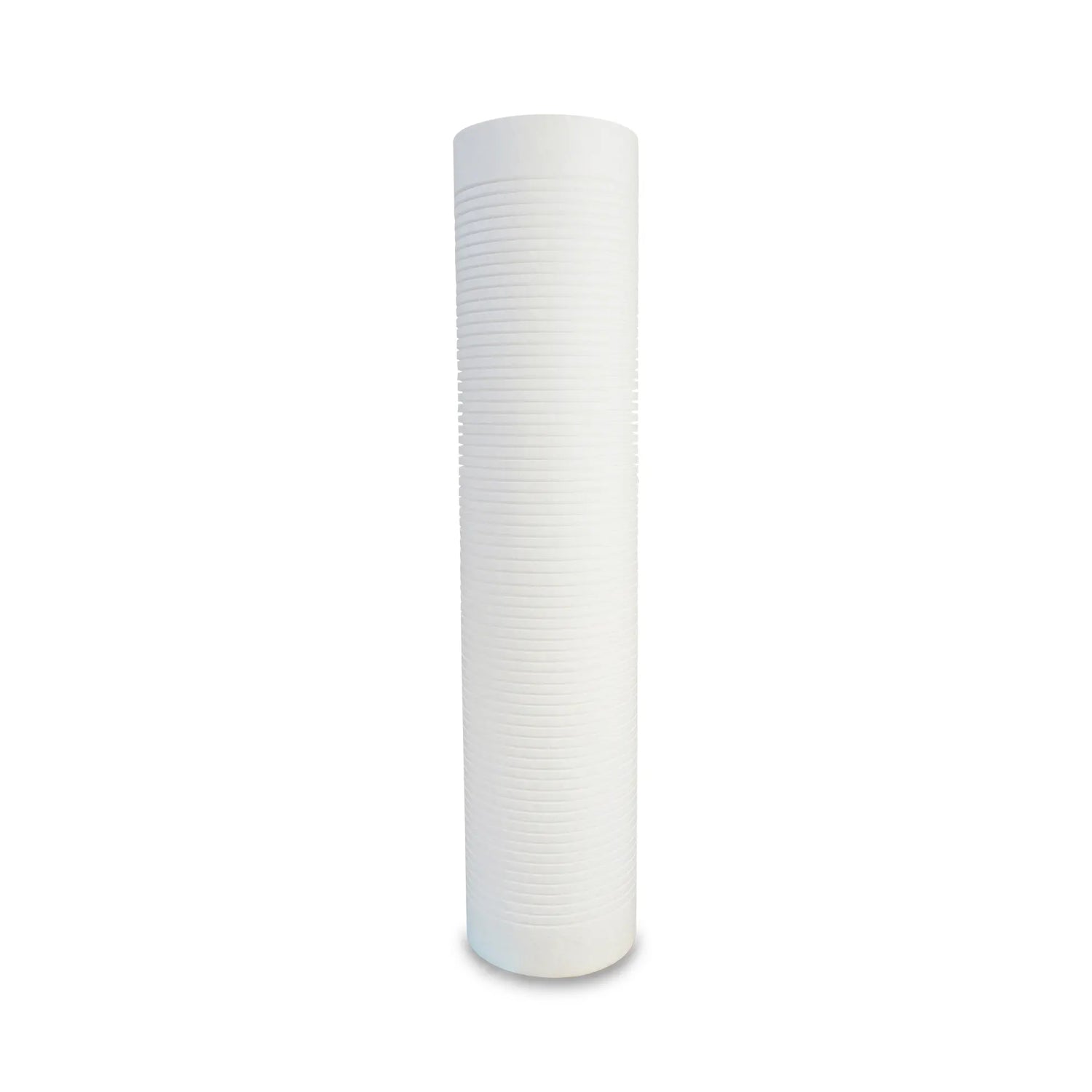 Fits all standard large diameter (4.5 inch) 20" water filter housings. Premium 5 micron sediment filter with corrosion and scale inhibitor product. Removes sand, silt, dirt, rust, loose scale, clay or organic material from water. 40 GPM flow rate.